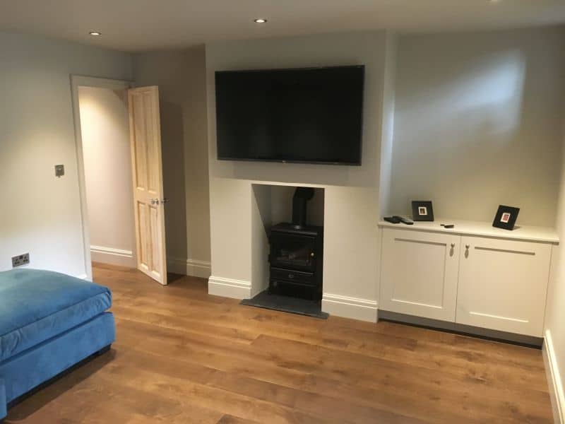 Pure designed a bespoke waterproofing system for a multi room basement conversion with installation of external access comprising of twin sump pumps, perimeter drainage channels and sealed cavity drainage membrane to the walls and floor. We then installed high efficiency insulation to the walls, floor and ceiling to retain heat and complement the basement waterproofing. Dry lining and full plaster skim then followed and bespoke joinery performed to the client’s specifications before decorations. To completed basement conversion added a TV room, a large dining room and a utility room.