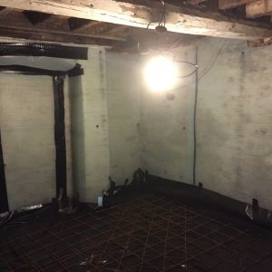 Working in partnership with Mr McEnroe, Pure Basement Systems specified a structural waterproofing package to combat the flood water ingress and damp. We installed a high performance waterproofing system, complete with a twin sump pump station, perimeter drainage channels and sealed floor and wall cavity drainage membrane. High quality insulation was installed to compliment the waterproofing system and full plastering completed the basement conversion.